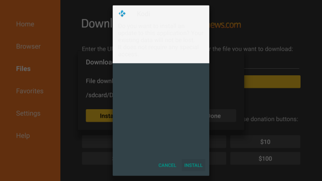 - Downloader will fetch the APK file from the URL and prompt you to install it on your FireStick. Click Install.