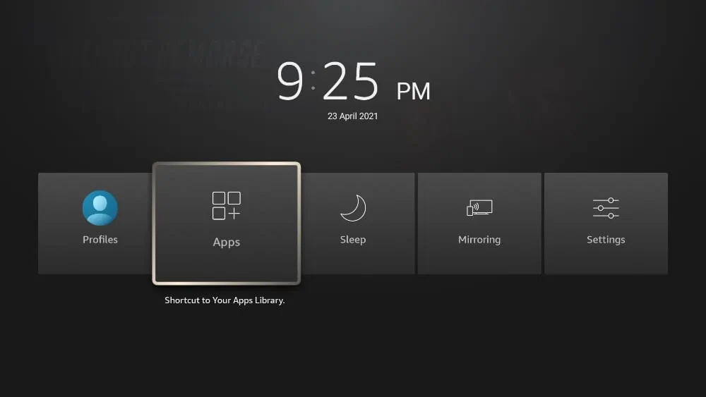- Open the FireStick home screen and scroll to the Apps menu.
